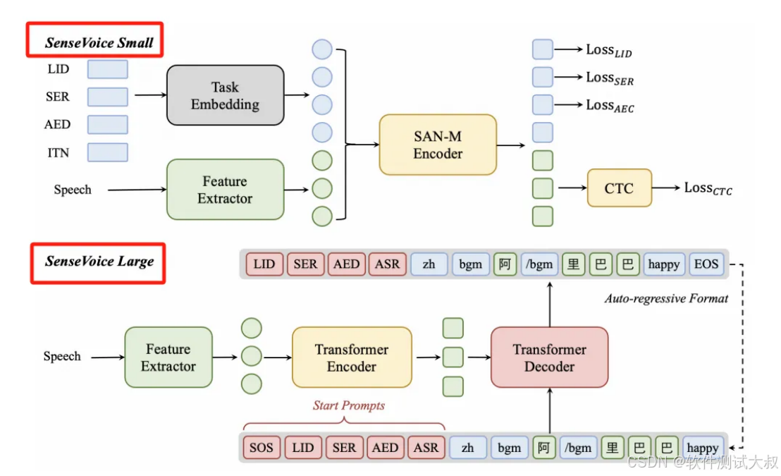 在有了基本了解之后,下面分别对其架构进行简要说明。我们重点关注SenseVoice。