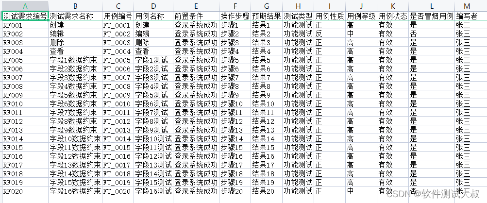 步骤2,按word文档要求,修改excel用例。注意,excel用例字段,必须包含步骤1表格中的字段;我这里是把字段修改成完全一致。