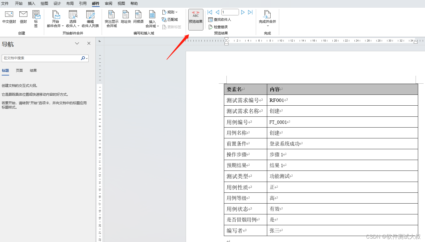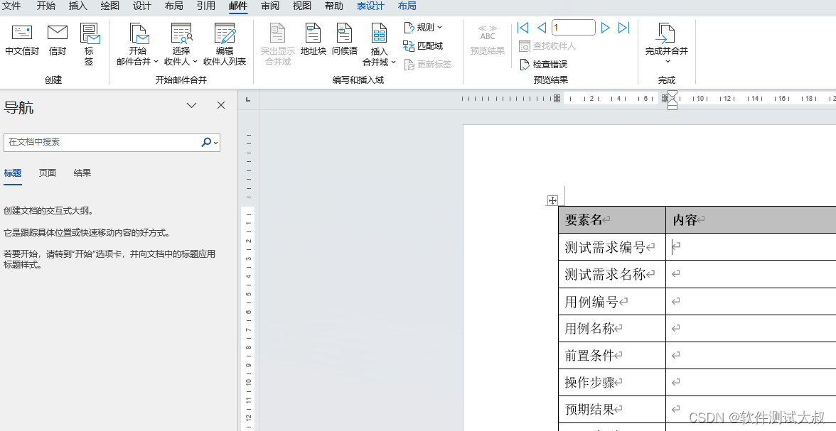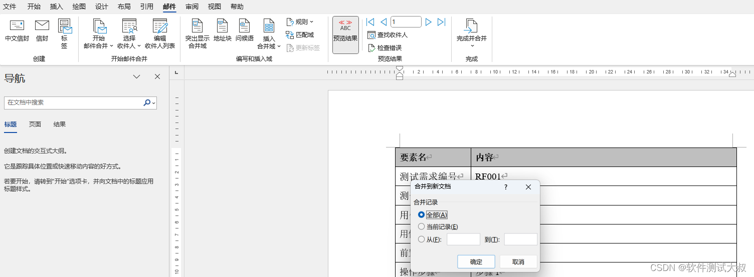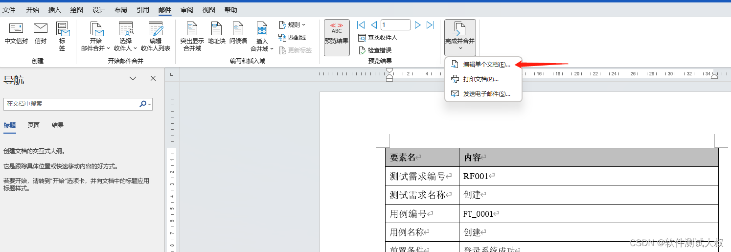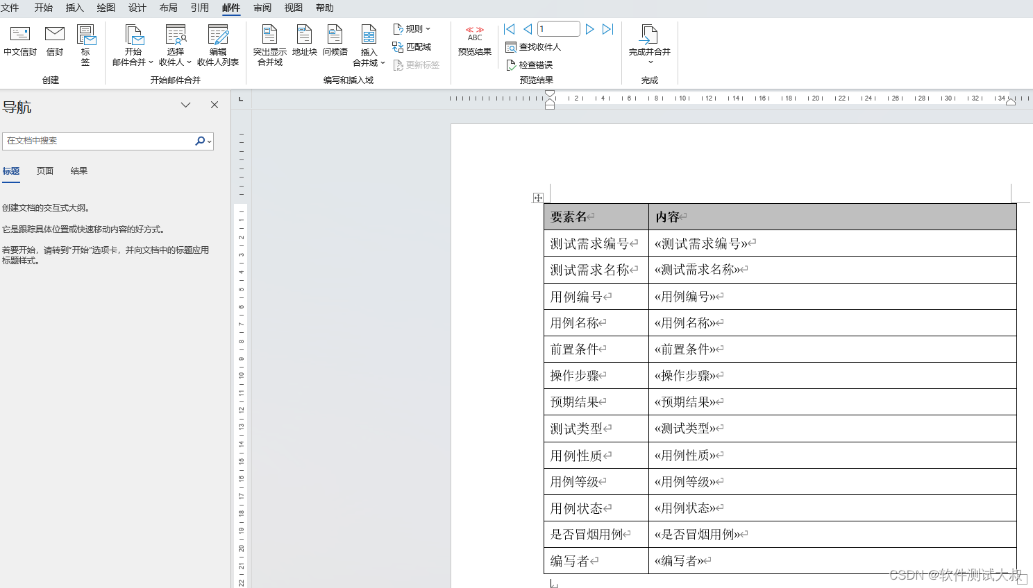 这里我们采用微软Office Word的“邮件合并”功能,快速将Excel的测试用例转换为Word表格。