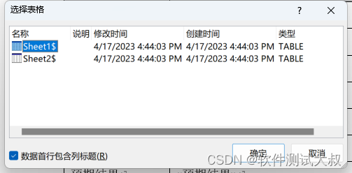 步骤5,选择测试用例所在的sheet页,点击“确定”按钮;