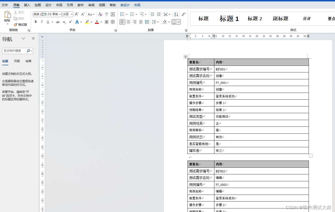 这个时候数据量大的话,需要等待一会,就会看到合并好的word表格文档啦。(这个步骤office word比WPS还是要快不少的。)可以把生成的这些word用例表格,copy到测试用例文档的对应章节中啦。