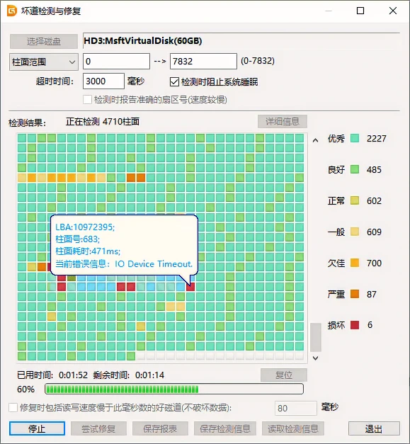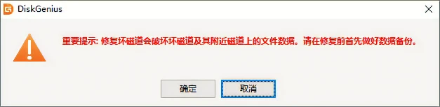 重要说明:坏道修复会破坏坏道附近的数据!在可能的情况下,一定要先对磁盘数据进行备份。