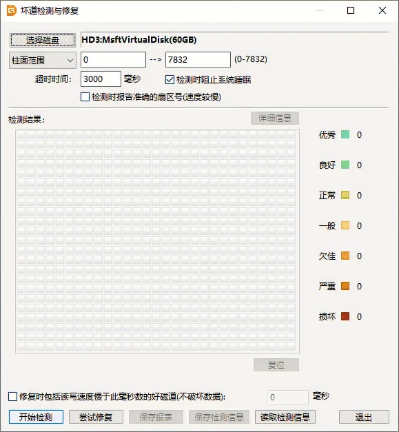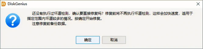 如果没有进行过坏道检测,或者运行本软件之前用其它软件进行过坏道检测,为节省时间,也可以在不检测的情况下直接用本软件修复坏道。