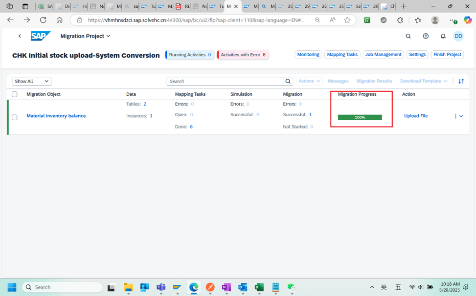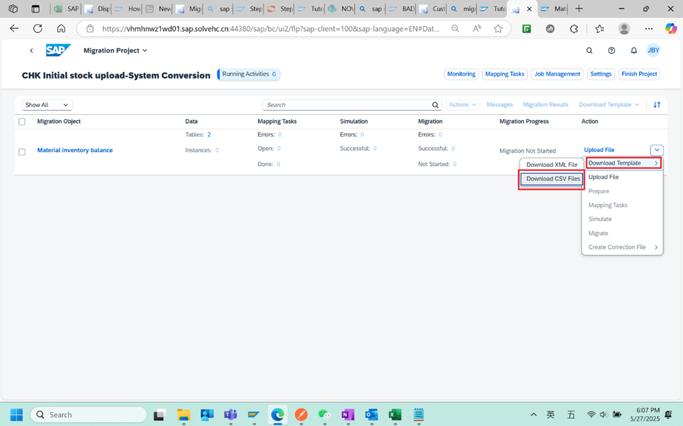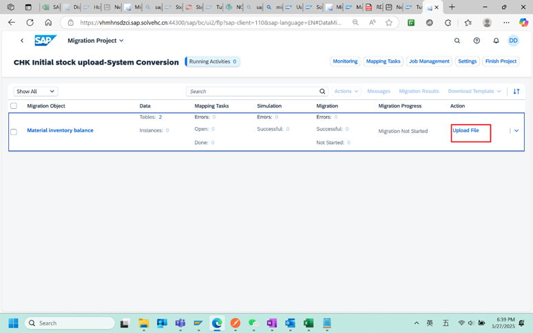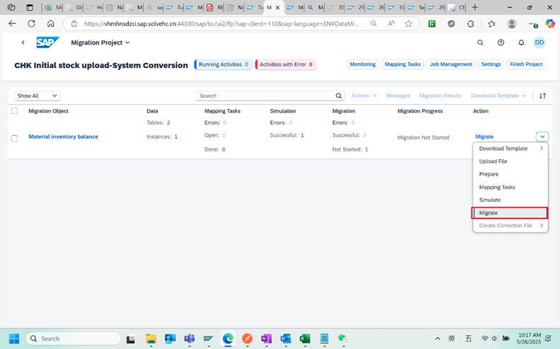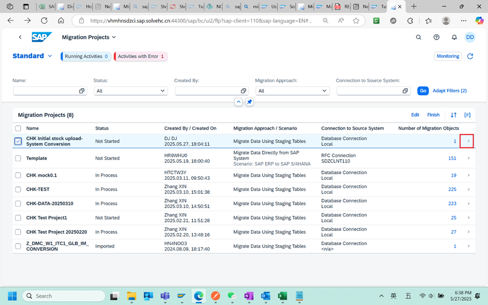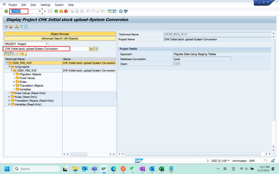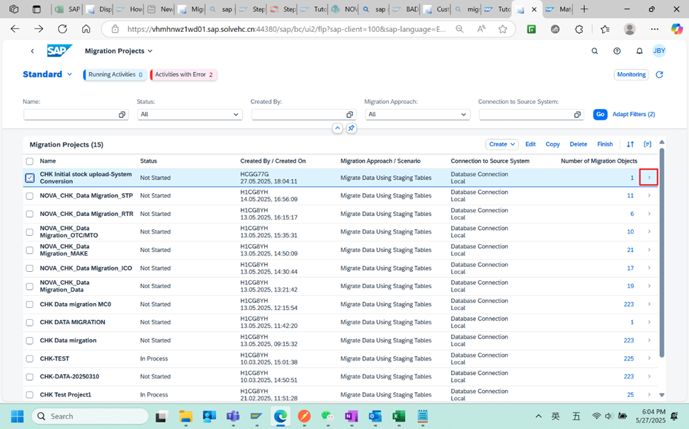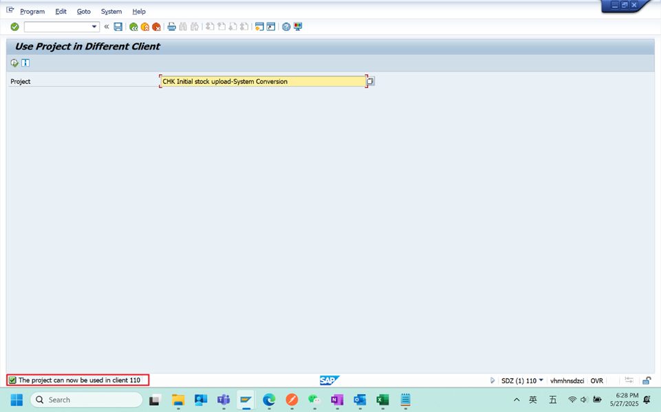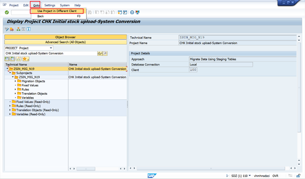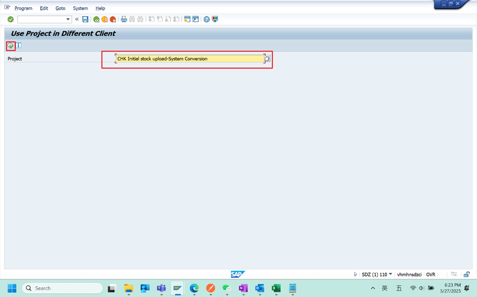 Step2 Log on to client 110 and find out project: CHK Initial stock upload-System Conversion