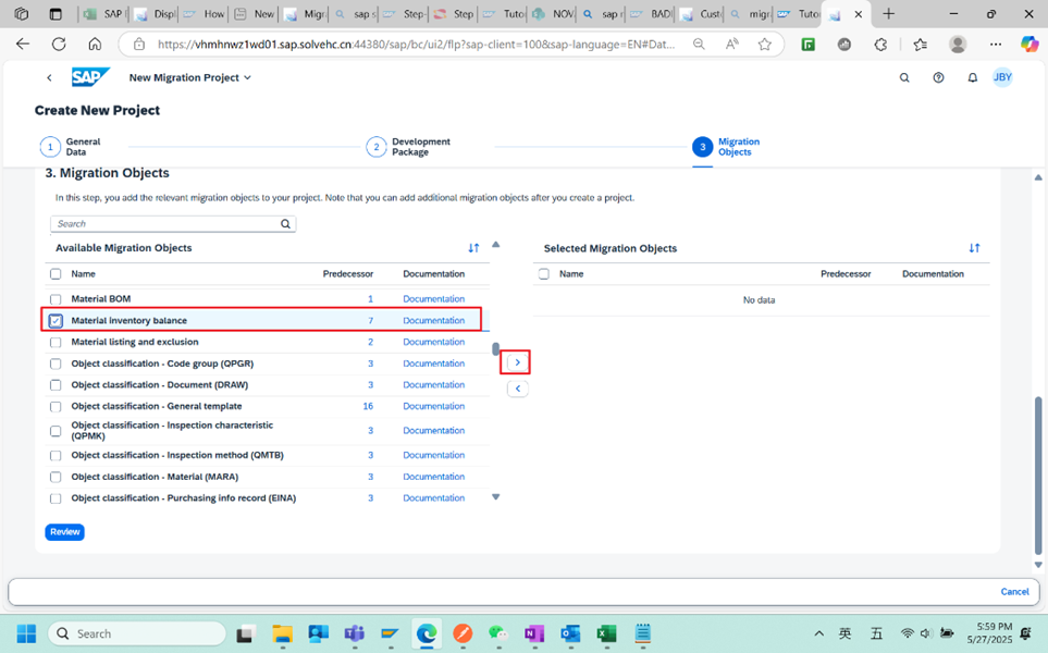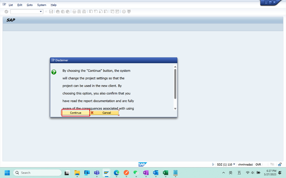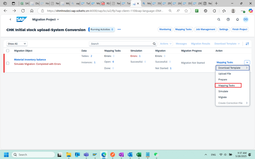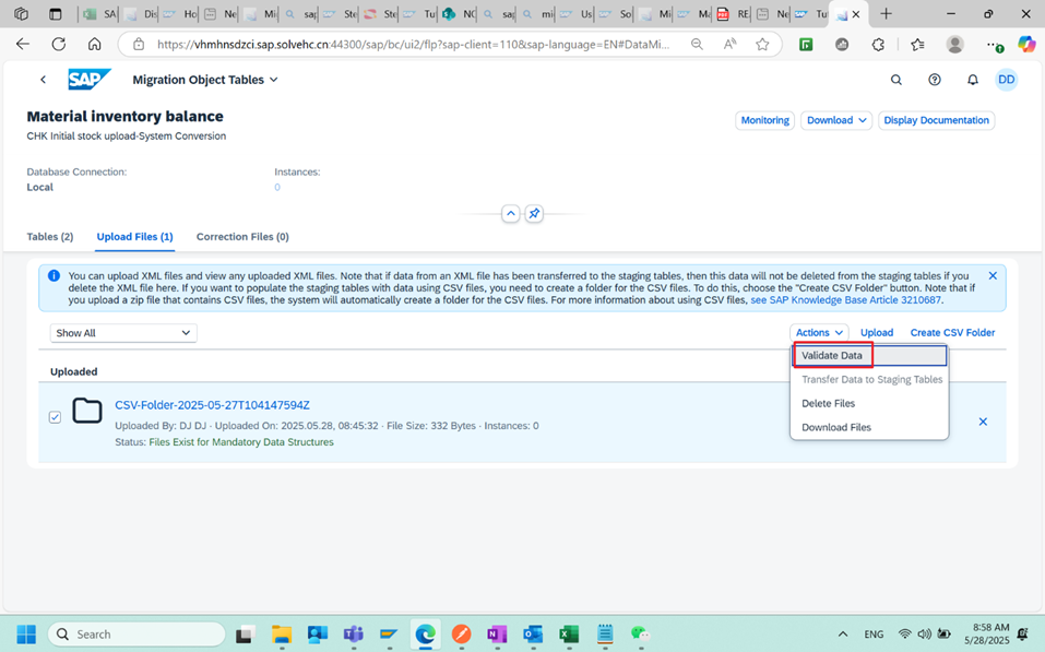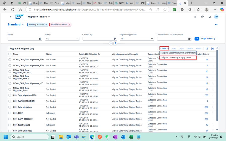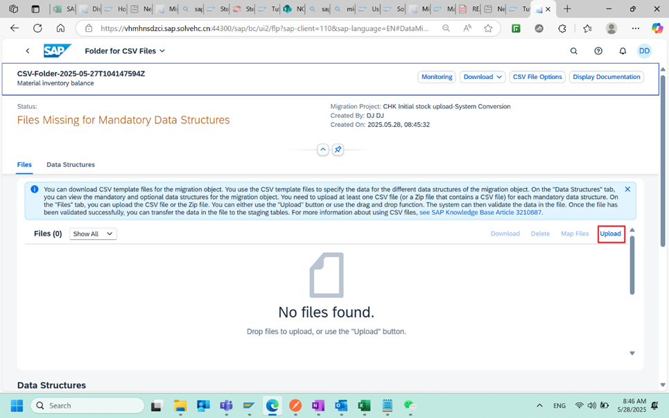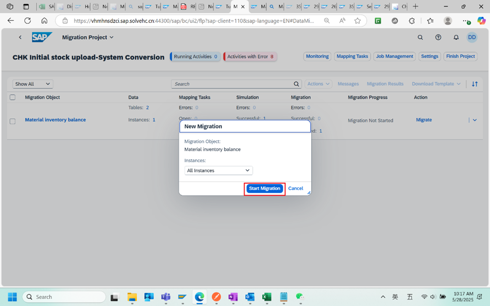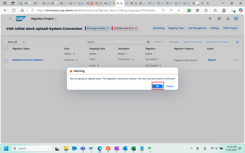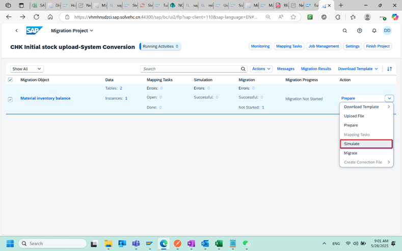 Step2 Log on to client 110 and find out project: CHK Initial stock upload-System Conversion