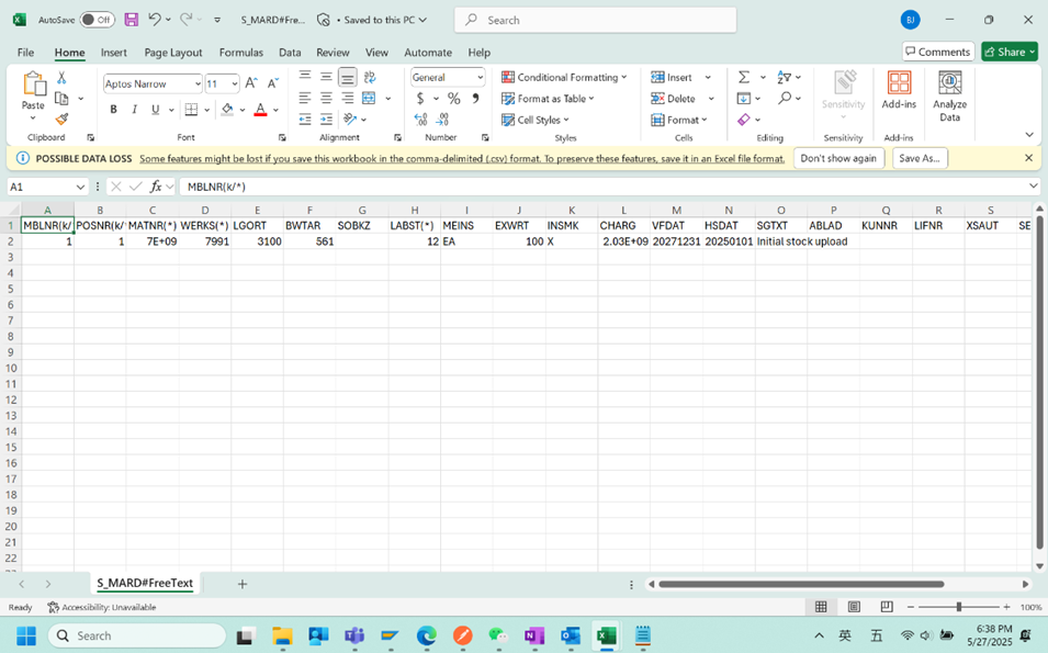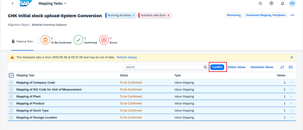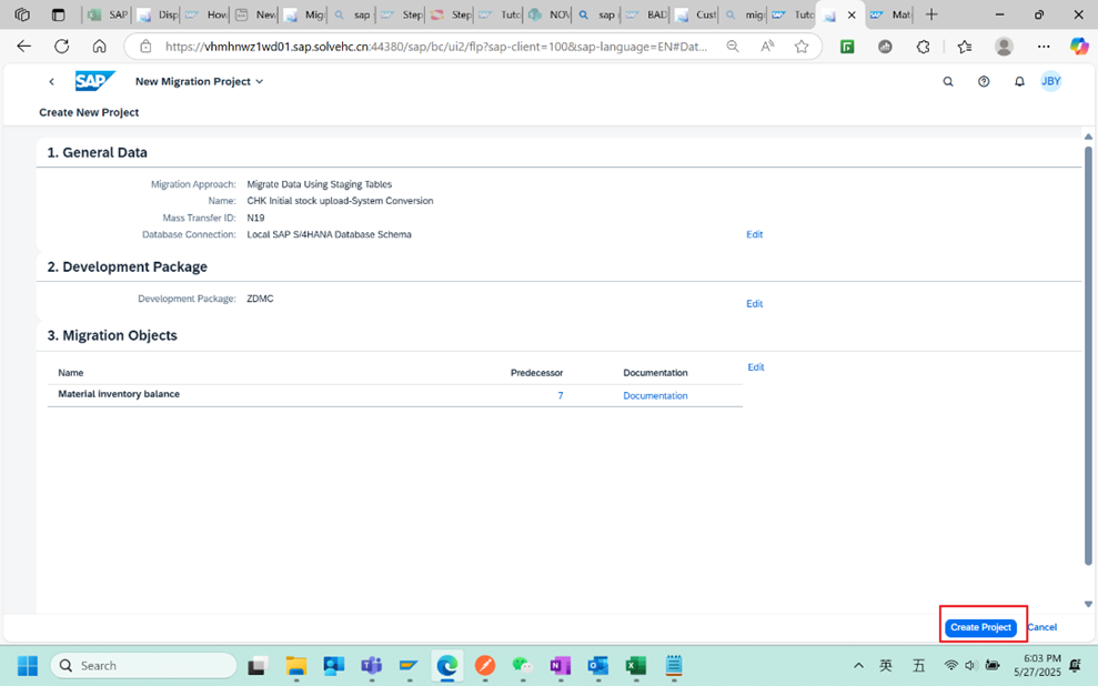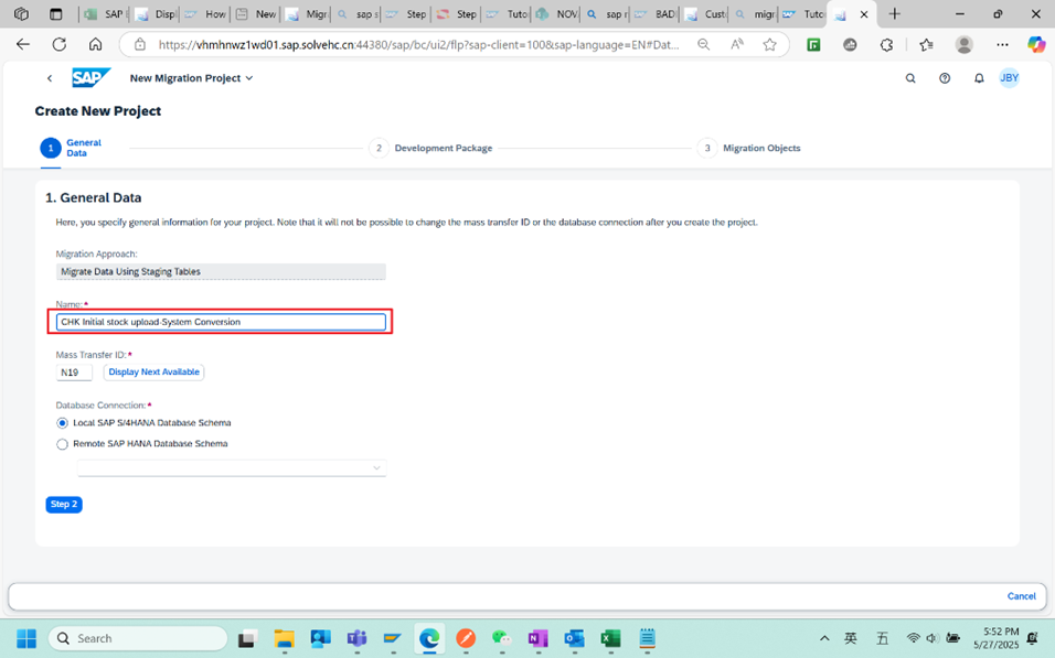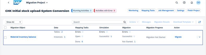 Step3 Enter Project Name: CHK Initial stock upload-System Conversion