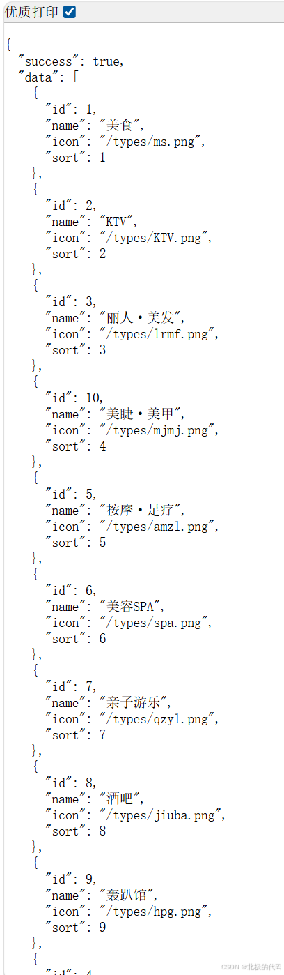 之后我们启动后端项目,然后打开http://localhost:8081/shop-type/list,如果页面是: