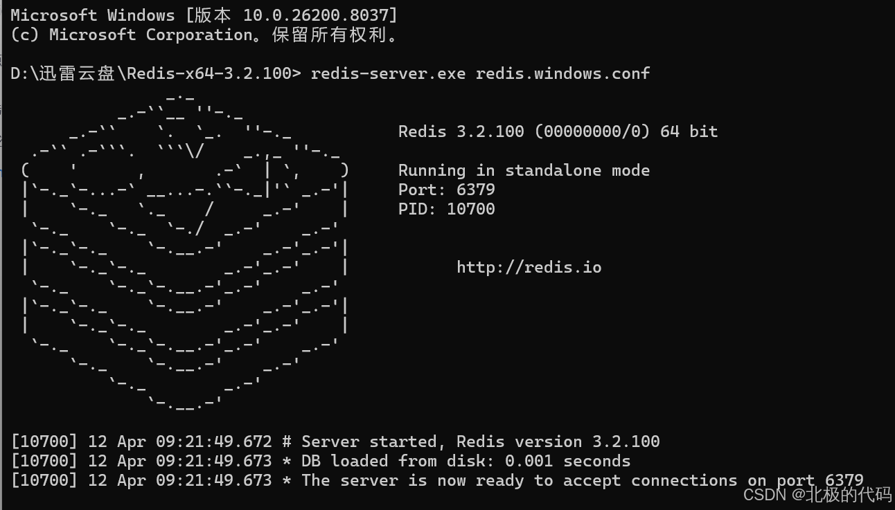 启动 Redis:redis-server(Windows 双击redis-server.exe)