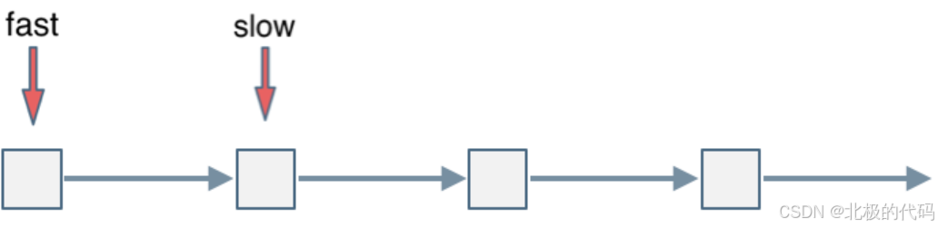 因为fast指针是一步走两个节点,slow指针一步走一个节点, 所以 fast指针走过的节点数 = slow指针走过的节点数 * 2: