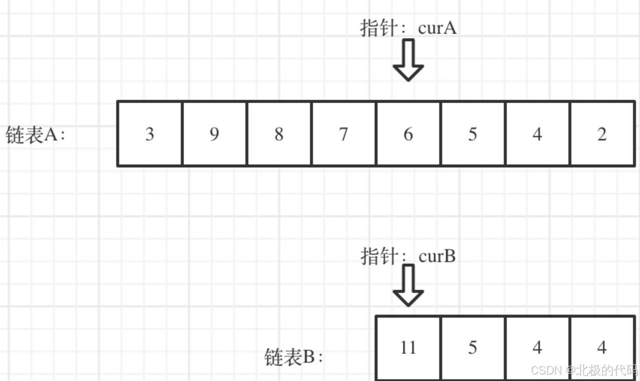// 让curA和curB在同一起点上(末尾位置对齐)