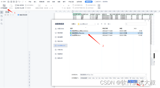 步骤4,在邮件合并页面,点击“打开数据源”,选择测试用例excel文件,点击“打开”按钮;