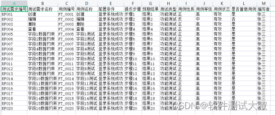 步骤2,按word文档要求,修改excel用例。注意,excel用例字段,必须包含步骤1表格中的字段;我这里是把字段修改成完全一致。