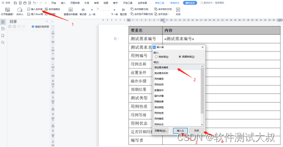 这里我们采用WPS的“邮件合并”功能,快速将excel的测试用例转换为word表格。