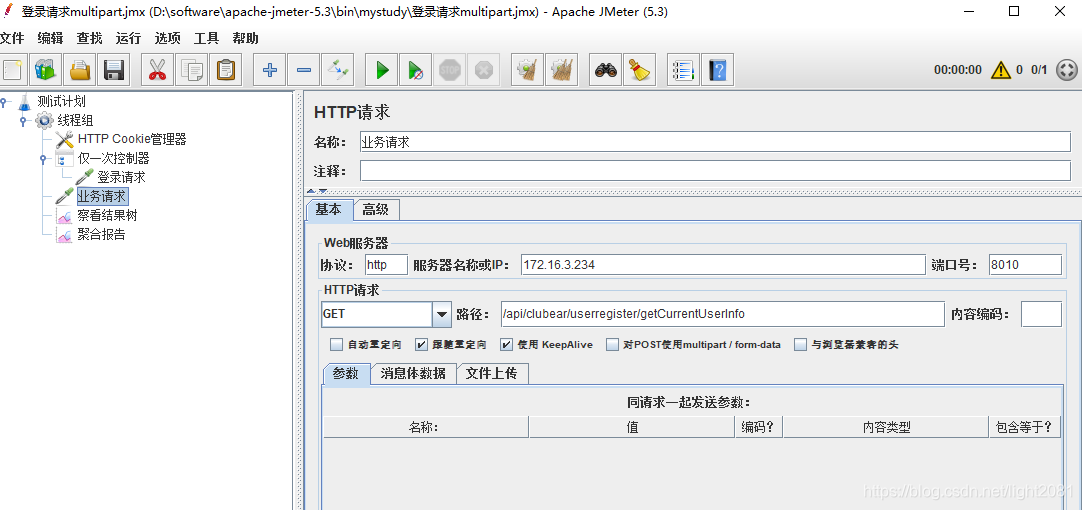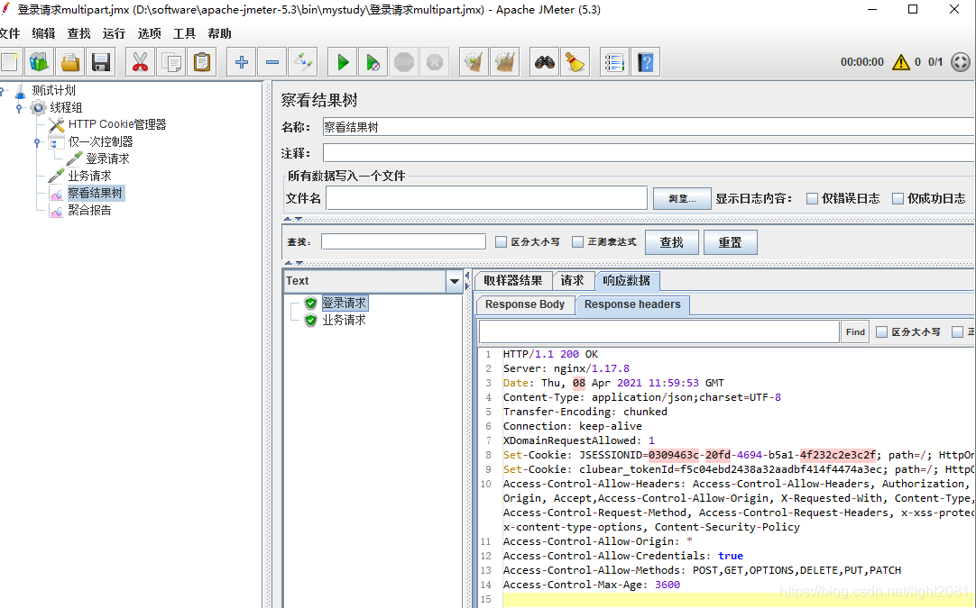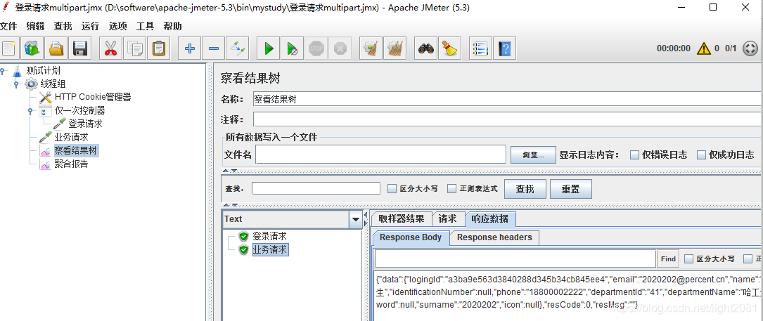 4,保存运行,可以看到登录请求和业务请求都可以成功