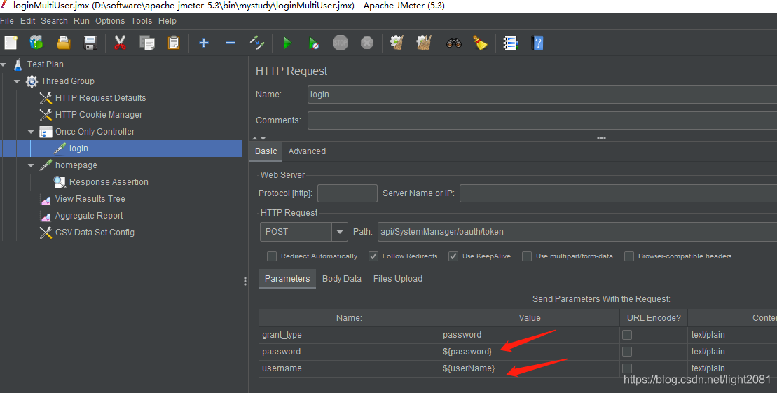 步骤2,在登录请求中配置,引用变量