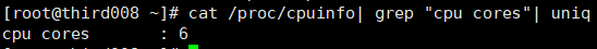 cat /proc/cpuinfo| grep "cpu cores"| uniq