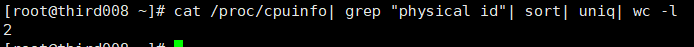 cat /proc/cpuinfo| grep "physical id"| sort| uniq| wc –l