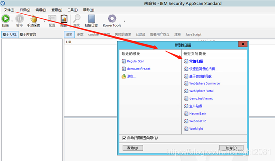首先,打开AppScan软件后,点击左上角文件菜单的新建,在弹窗中,点击常规扫描