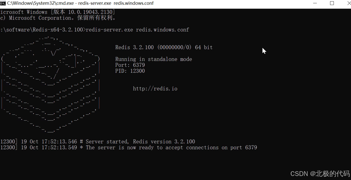 直接在当前目录的窗口,输入cmd 回车,打开命令行,敲入 redis-server.exe redis.windows.conf(我们可以不用敲全,可以直接用tab键自动关联)