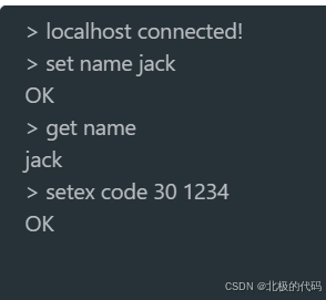 SETEX | SETEX key seconds value | 设置并指定过期 | O(1) | SETEX code 60 "123456" |