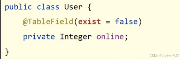 2.实体类中添加对应的字段,并表明是逻辑字段。