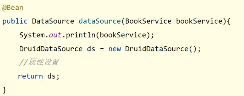 引用类型注入只需要为bean定义方法设置形参即可,容器会根据类型自动装配对象