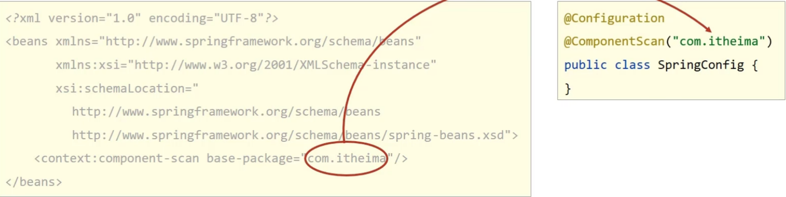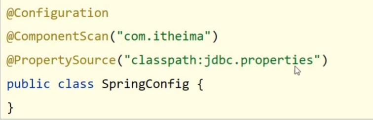 @Configuration注解用于设定当前类为配置类 @Componentscan注解用于设定扫描路径,此注解只能添加一次,多个数据请用数组格式