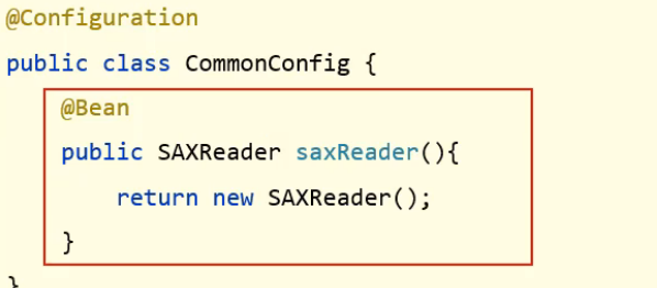这是配置在启动类中的,一般不建议,因为我们要保证启动类的纯粹性,这是我们可以创建一个类加上@Configuration配置类。