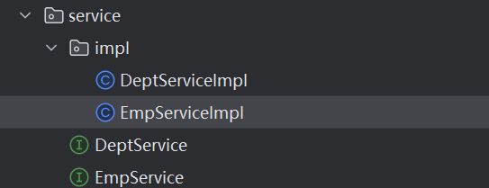 2.service接口类中定义方法签名,在实现类中实现方法,调用Mapper查询数据;