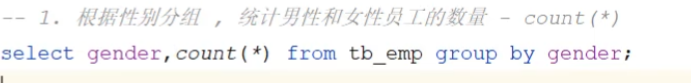 语法 分组查询:select 字段列表from 表名[where 条件]group by 分组字段名[having 分组后过滤条件];