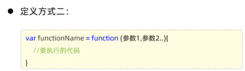 介绍:函数(方法)是被设计为执行特定任务的代码块。 定义:JavaScript函数通过function关键字进行定义,语法为: function functionName(参数1,参数2..) //要执行的代码 注意: 形式参数不需要类型。因为]avaScript是弱类型语言 返回值也不需要定义类型,可以在函数内部直接使用return返回即可调用:函数名称(实际参数列表)