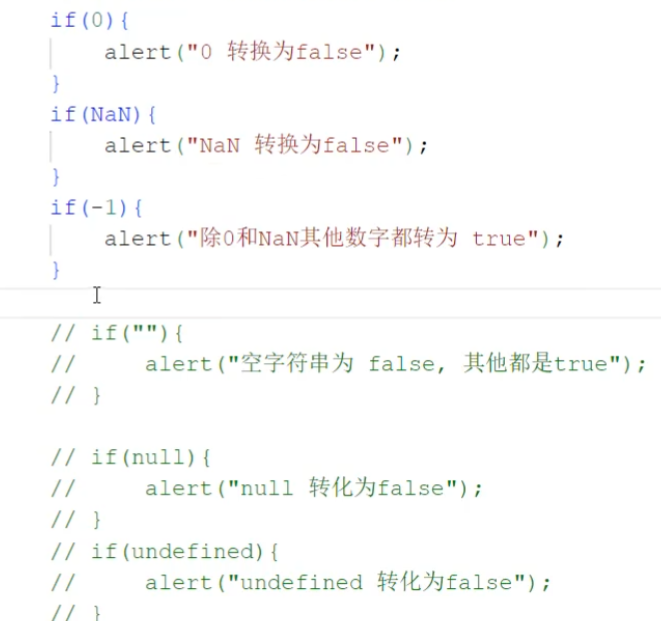 字符串类型转为数字: 将字符串字面值转为数字。如果字面值不是数字,则转为NaN。其他类型转为boolean: Number:0和 NaN为false,其他均转为true。 String:空字符串为false,其他均转为true。 Null和 undefined:均转为false。