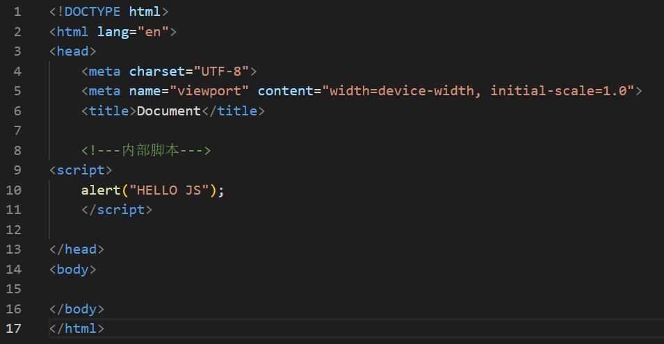内部脚本:将javacript代码定义在HTML界面中