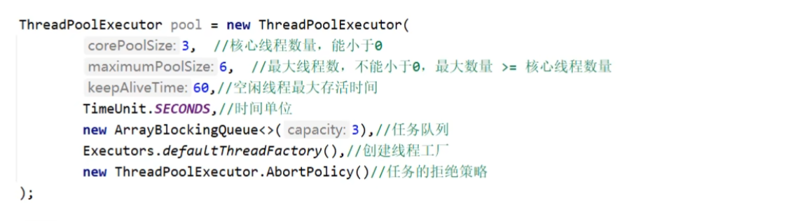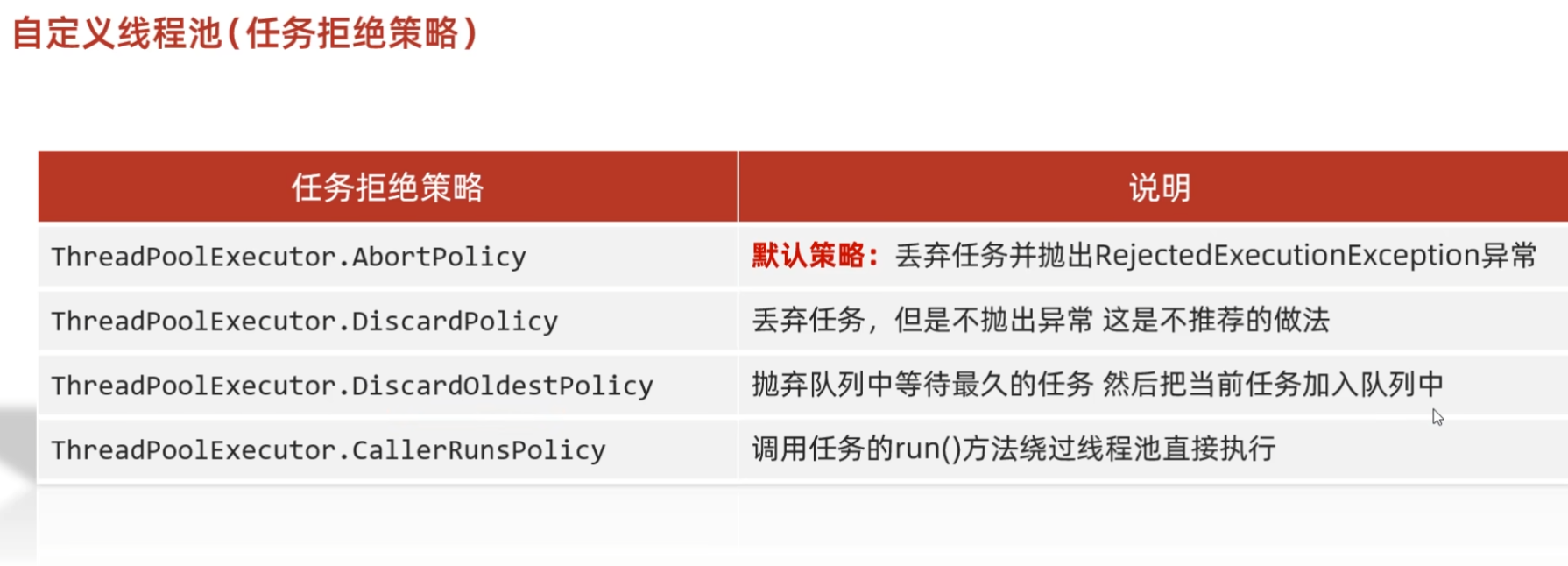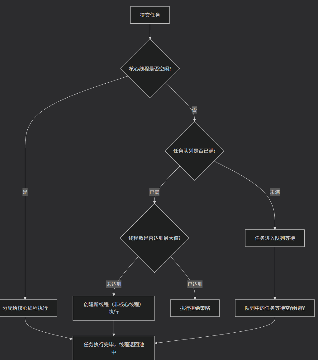 ①创建一个池子,池子中是空的 ②提交任务时,池子会创建新的线程对象,任务执行完毕,线程归还给池子 下回再次提交任务时,不需要创建新的线程,直接复用已有的线程即可 但是如果提交任务时,池子中没有空闲线程,也无法创建新的线程,任务就会排队等待