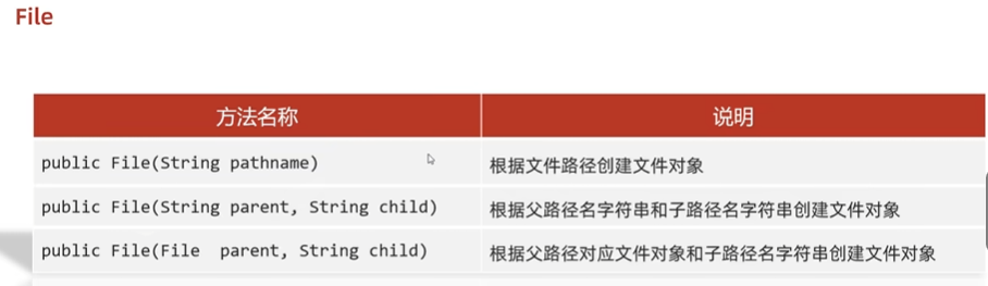 File对象就表示一个路径,可以是文件的路径,也可以是文件夹的路径 这个路径可以是存在的,也允许是不存在的 根据字符串表示的路径,变成File对象,这样就可以用File里面的方法了 父级路径,子级路径 绝对路径是带盘符的 相对路径是不带盘符的,默认到当前项目下去找