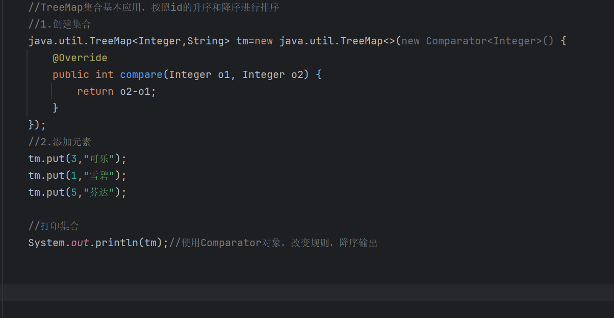 代码书写两种排序规则 1.实现Comparable接口,指定比较规则 2.创建集合时传递Comparator比较器对象,指定比较规则