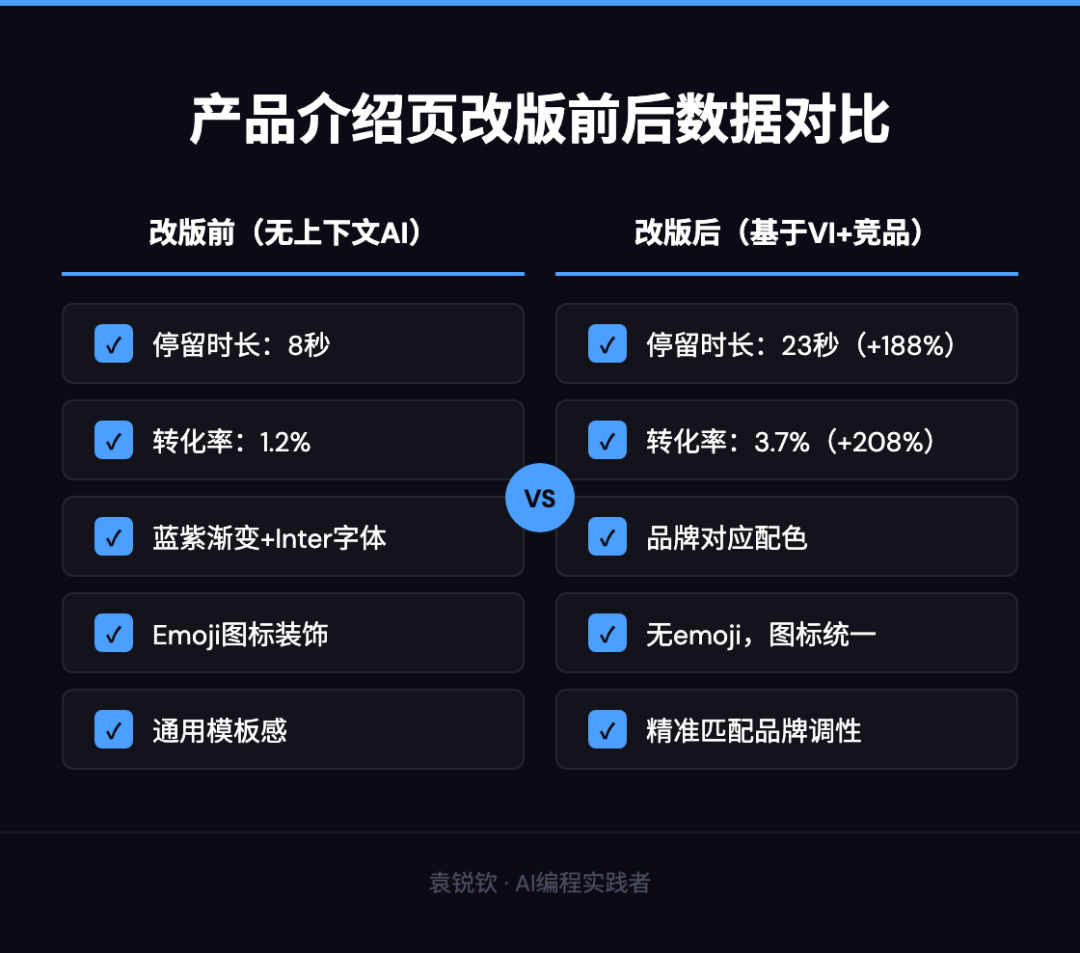 AI会给一个看起来像样的方案,有标题,有按钮,有CTA,看起来完整。