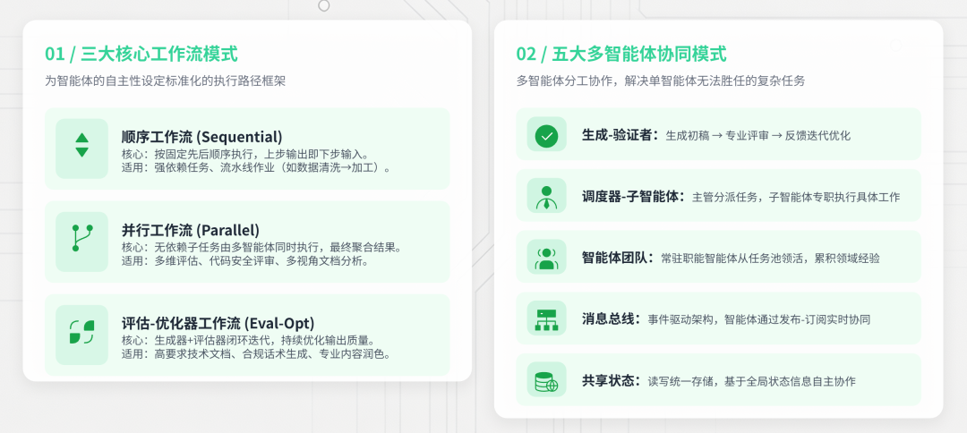 AI 智能体的核心价值在于自主决策与复杂任务求解,而工作流与协同模式则是为这种自主性赋予结构化、可落地的执行框架。