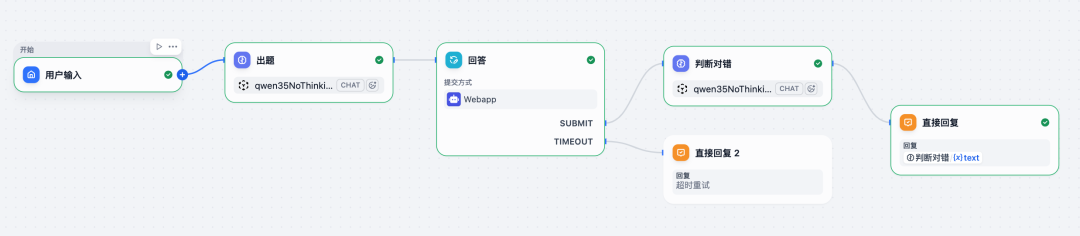构造一个简单的 人工节点测试.yml[3] 流程,先由 LLM 生成一个计算题,再由人工节点回答计算结果,最终 LLM 判断是否计算正确。
