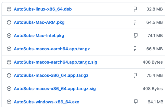 目前 AutoSubs 支持 Windows、macOS(Apple Silicon 和 Intel 双架构)以及 Linux 三大主流系统,而且提供一键安装包,小白用户也能轻松上手。