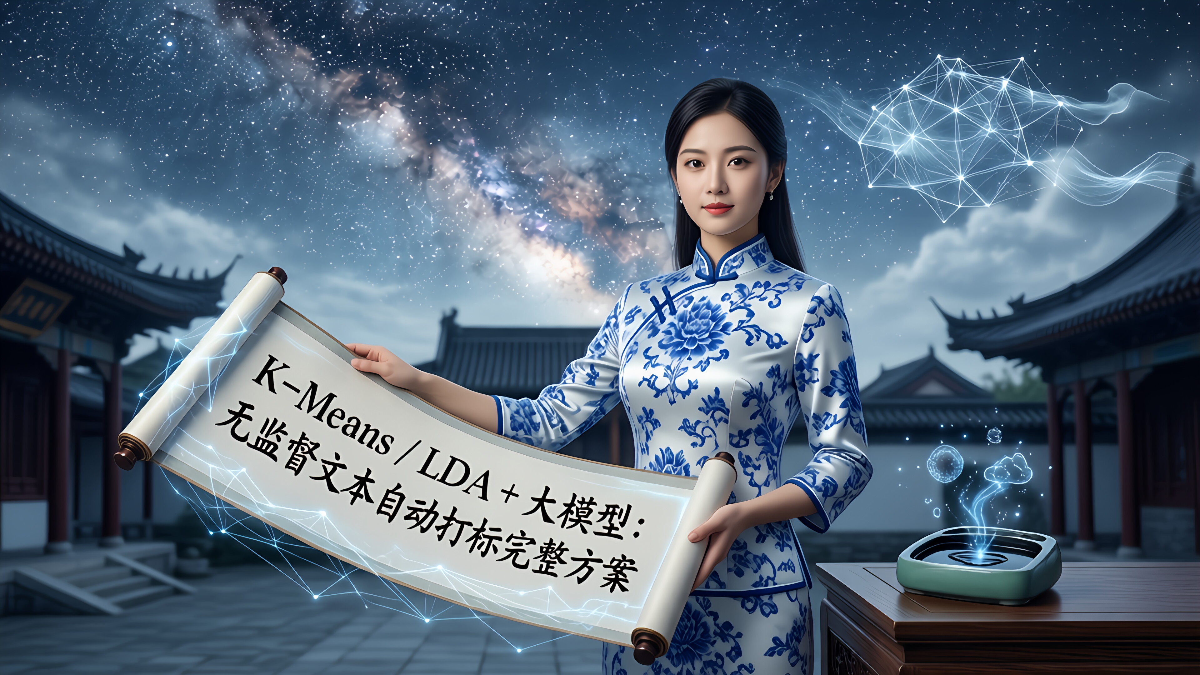 在日常工作中,非结构化文本数据已成为企业运营、用户研究、内容治理的核心资源,电商评论、客服工单、用户反馈、新闻资讯、业务日志等海量文本,藏着最真实的需求与问题。但现实中,绝大多数文本数据都没有现成标签,人工标注耗时耗力、成本高昂且标准不一,成为文本智能分析落地的最大障碍。传统无监督学习中,K-Means 聚类、LDA 主题模型等算法虽能实现数据自动分组,却只能给出“类别 1、类别 2”这类无意义的数字编号,无法解释簇内语义、无法生成业务可理解的分类名称,最终让聚类结果停留在算法层面,难以真正用于业务决策。