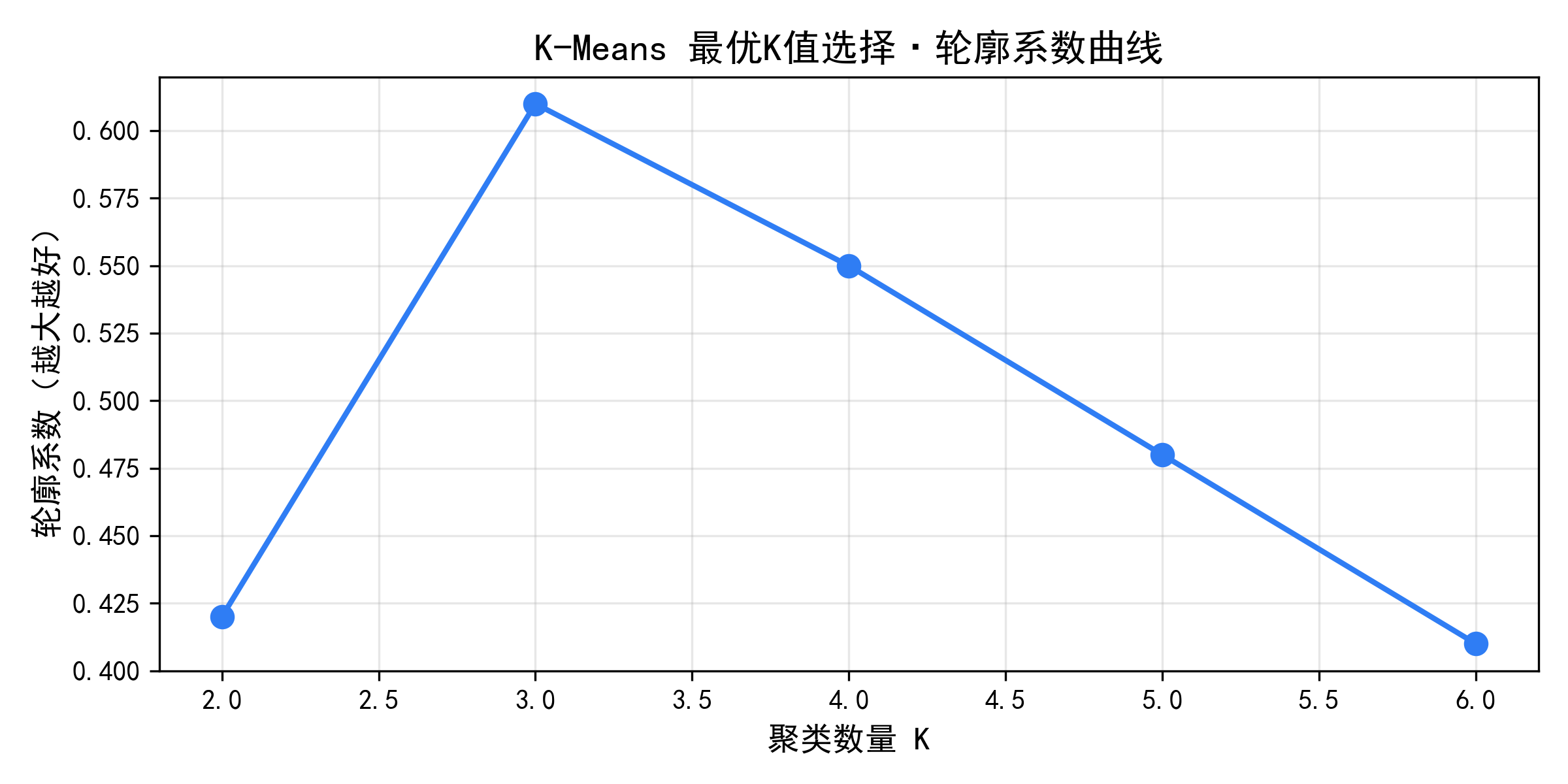 # ===================== 步骤4:K-Means聚类(选择最优K值) =====================