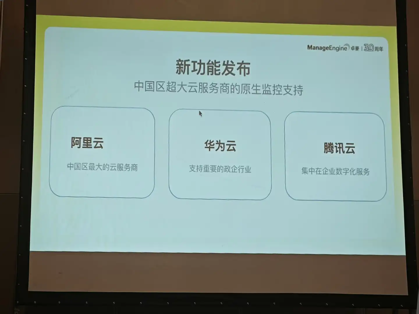昨天,ManageEngine卓豪宣布其原生监控功能已支持阿里云、华为云和腾讯云三大本土云服务商,客户可以在一个界面内完成跨云的统一监控和管理。