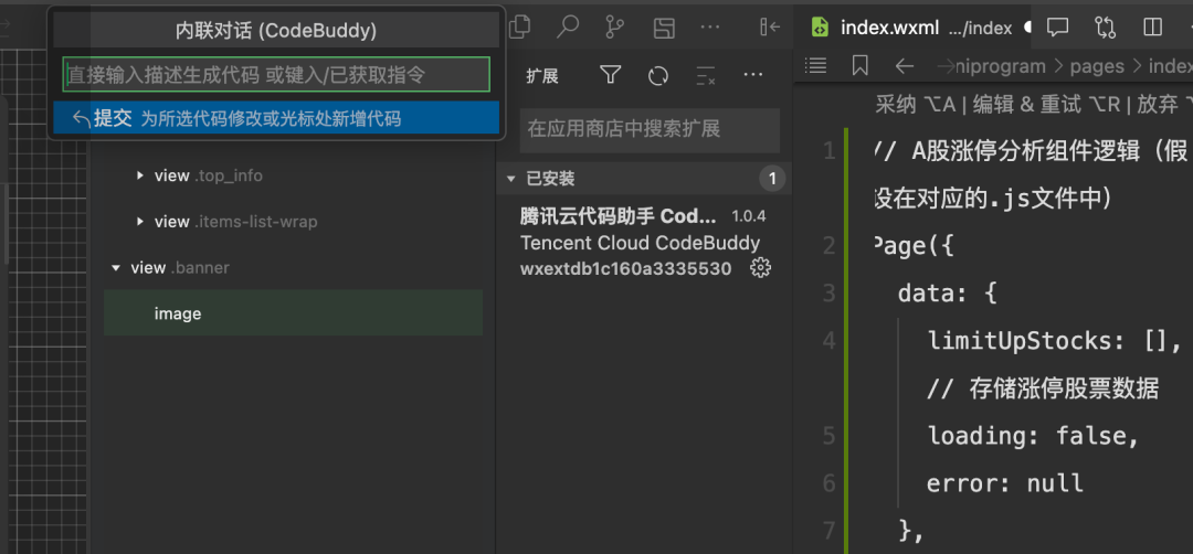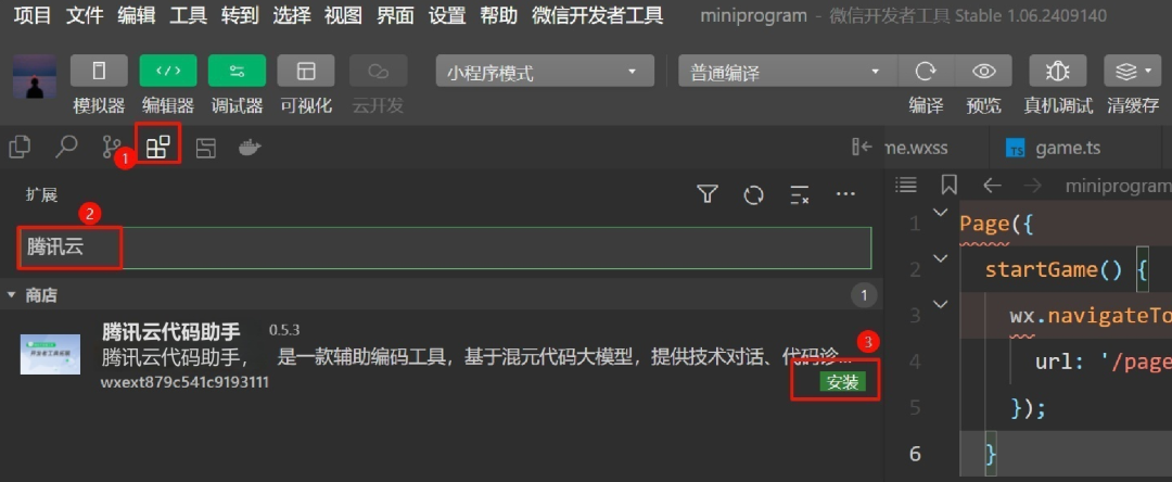 腾讯云代码助手插件安装完成后,建议重启一下微信开发者平台 IDE。