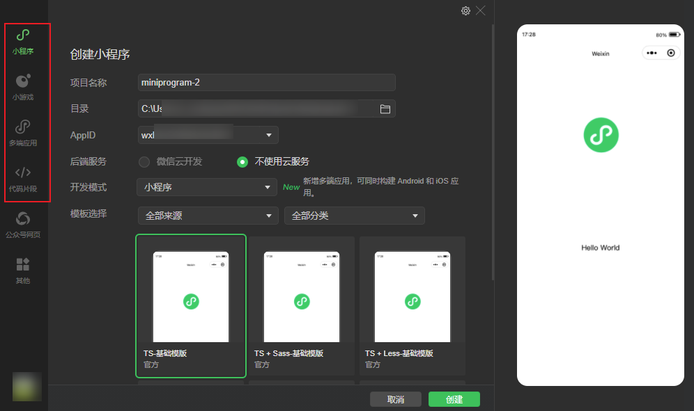 看完官网介绍,我差点想顺手关闭。 直到我看到它支持微信小程序开发, 顿时有了兴趣。之前我捣鼓过微信小程序,那就按照官方文档快速安装吧