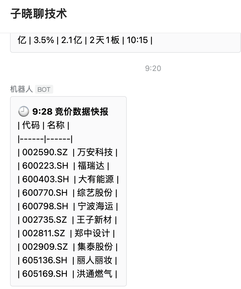 markdown_content = "### 🕘 9:28 竞价数据快报\n"