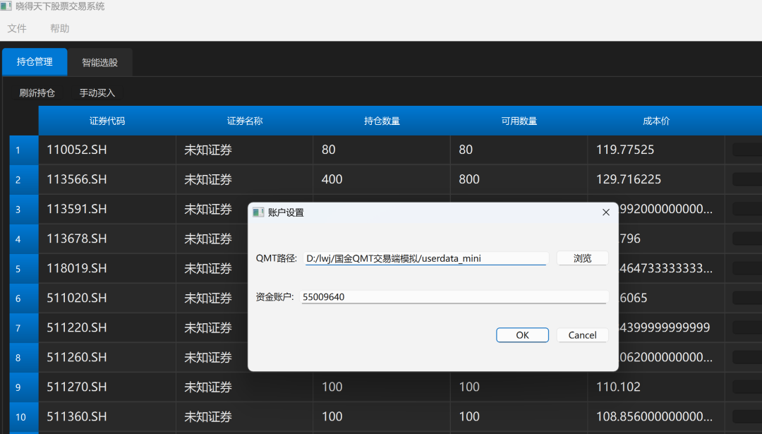 1、设置miniqmt的路径, 资金账户