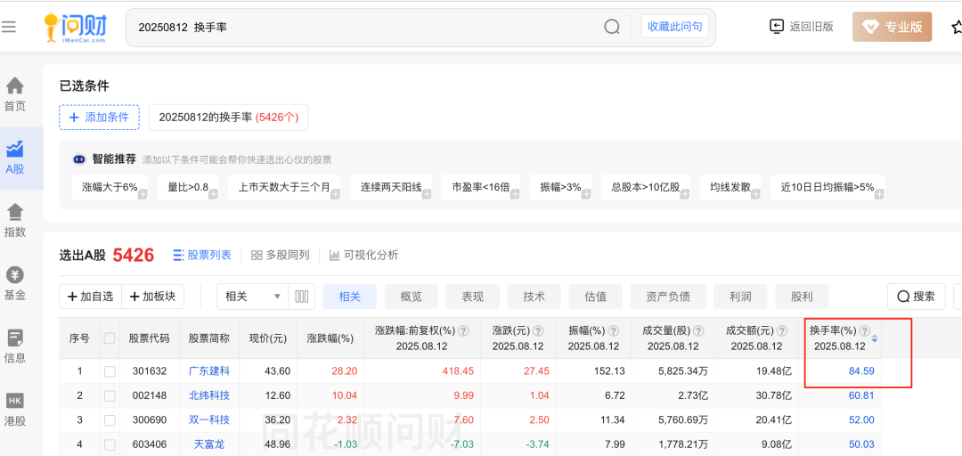 df = pro.daily_basic(trade_date= '20250812', fields='ts_code,turnover_rate')