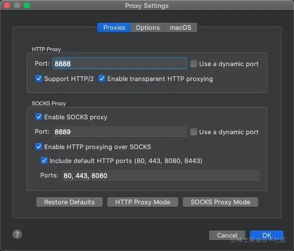 找到 Proxy - Proxy Settings,Port我们还是8888就行,该沟的就沟上。