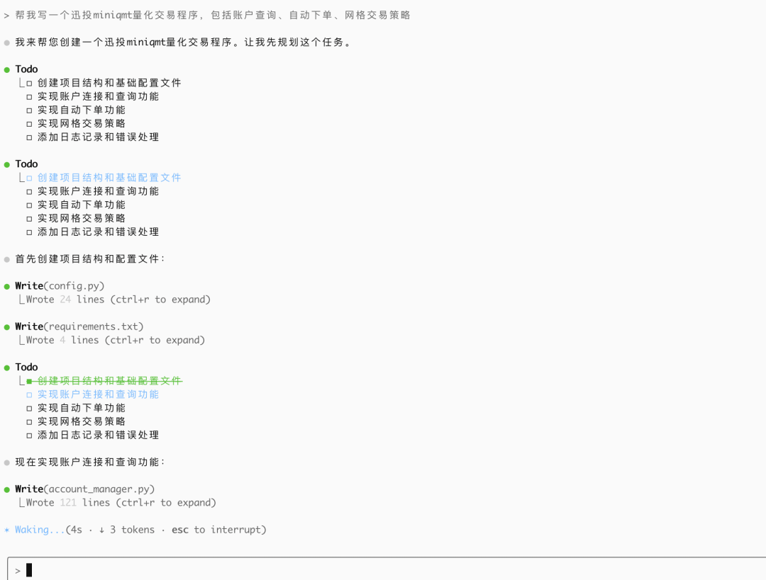 比如我们写量化交易程序,完全可以自己描述一句话,比如我们想写一个基于xtquant+miniqmt的XXX交易策略, 我们完全让AI帮忙写。